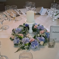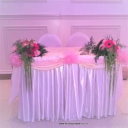 Een mooi versierde tafel met een opvallend groot bloemstuk, een bloemenkrans, verschillende potjes en flesjes of de hippe kleine Mason Jars. Als je een huwelijk hebt met een diner dan mogen bloemen op de tafel niet ontbreken. Het straalt veel luxe uit en geeft natuurlijk een prachtige sfeer, helemaal in jullie kleuren en passend bij de locatie. Natuurlijk brengen wij de bloemen naar de trouwlocatie en zetten alles keurig op de afgesproken plaatsen. Ook buiten de Regio Den Haag. Er is van alles mogelijk kijk maar eens hieronder.