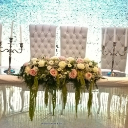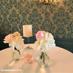 "Het bruidsboeket, een prachtige grote vaas met een passend boeket, de corsages en de tafelversieringen waren top. Precies wat we afgesproken hadden en mooi verzorgd"