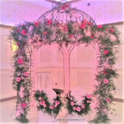 Zo'n trouwboog decoreren wij natuurlijk helemaal in stijl, passend bij het thema van jullie bruiloft, je bruidsboeket en al het overige bruidsbloemwerk.
